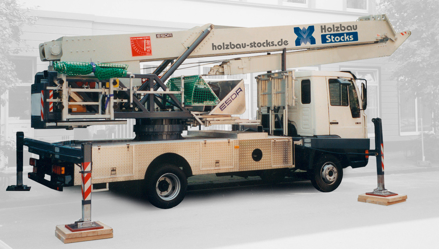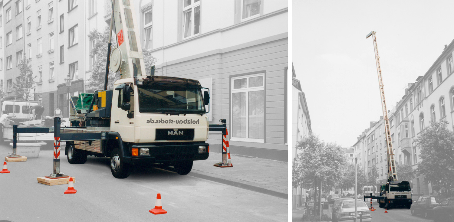 Durch den Einsatz unseres Kranwagens erreicht man auch schwer zugängliche Stellen. So kann bei kleineren Reparaturarbeiten der Einsatz eines Gerüsts oftmals vermieden werden.