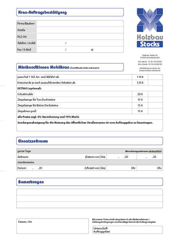Kranstunde je nach auszuführenden Arbeiten | ab 125 € |